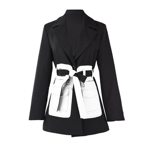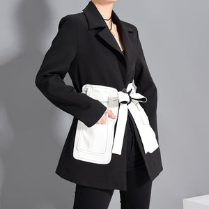 Black and white blazer with beautiful detail on the pocket and lovely belt to go with it.