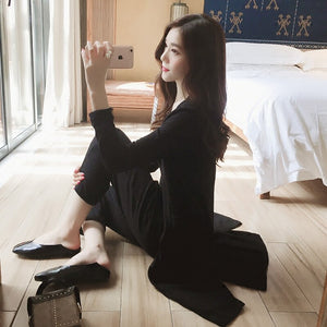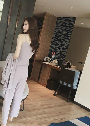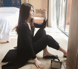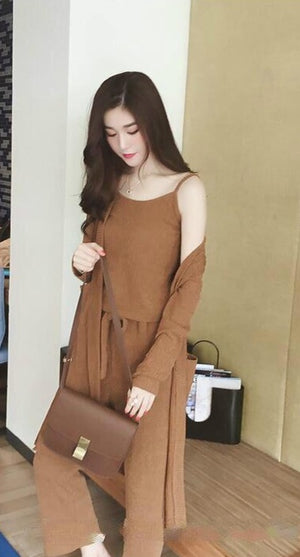 Women 3 Pieces Set Knitted Pullover Sweaters Tops Deep V-neck Long Sleeve Sweatshirt Pants Women's Sets