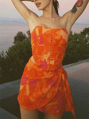 Print Skirt, Print Set, Corset Top |