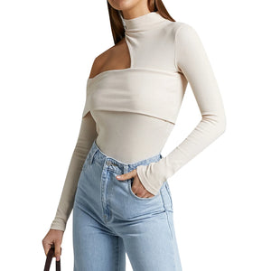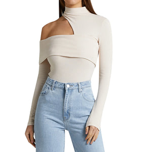Classy High-Collar Hollow-Shoulder Top