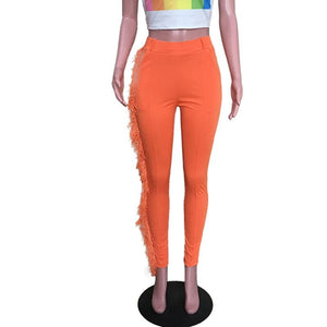 High Waist Fringe Pants