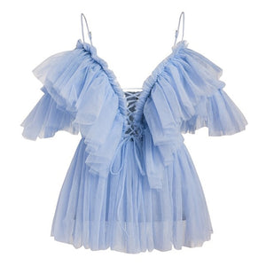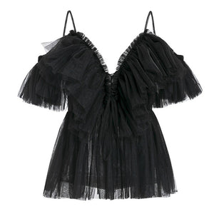 V Neck Ruffle Boho Mesh Blouse