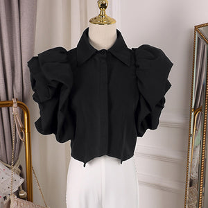 Vintage Ruffles Women Blouse Lapel Collar Butterfly